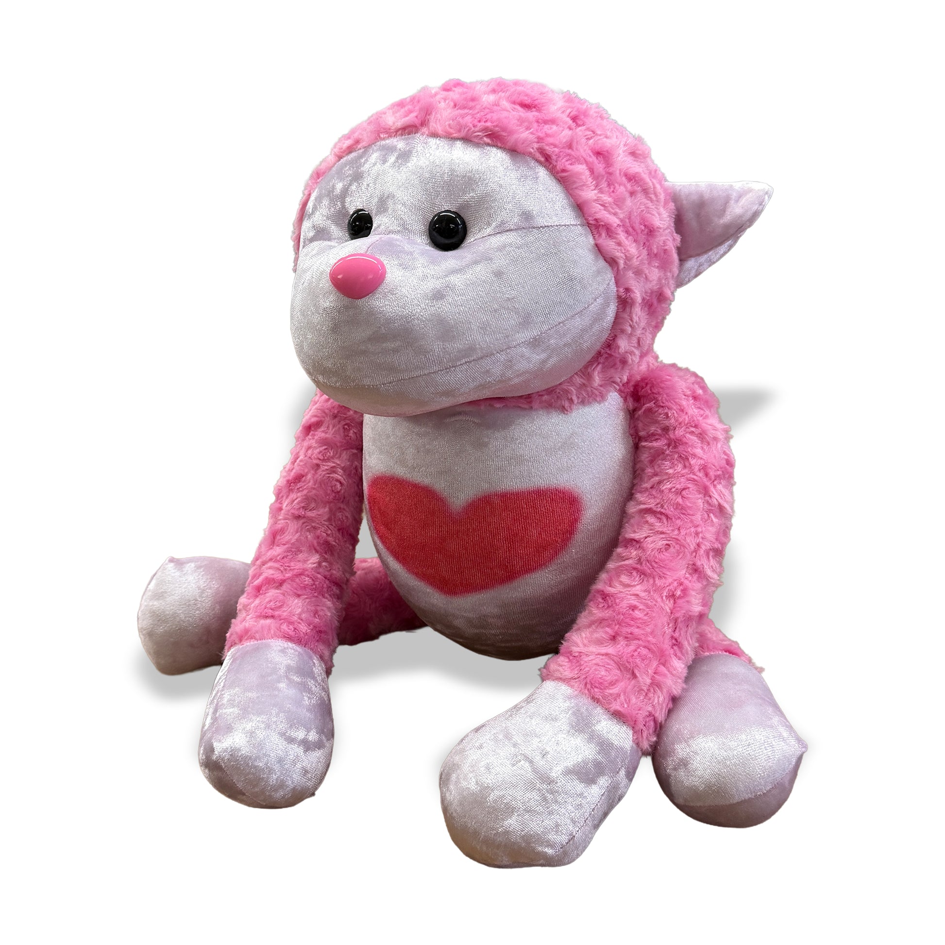 The Love Monky stands at 26" tall, and is FULL of stuffing. they are sturdy, but squishy, and are very huggable :3
